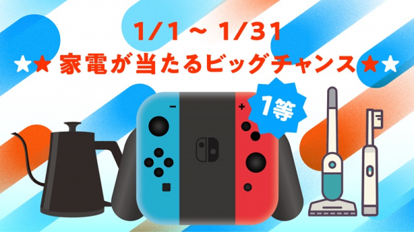 新年の目玉企画は「【新春キャンペーン】抽選で温泉旅行が当たる!」で、抽選で2名様にペア宿泊券をプレゼント!さらに大好評の「☆★家電が当たるビッグチャンス★☆」では、ニンテンドーSWITCHを1名様に、バルミューダ ザ・ポットを抽選で2名様にプレゼントします。その他、定番の「お店で使えるギフトクーポン抽選!」、「抽選で『美味しいギフト』を当てよう♪」、「☆☆抽選で『図書カードネットギフト』が当たる☆☆」など全8企画を毎日開催します。ぜひ、抽選に参加して豪華景品をゲットしてください。Zeetleは2025年も、皆さまの生活を豊かにするため、より高い利便性とお得さを追求し魅力的な抽選企画を開催します。