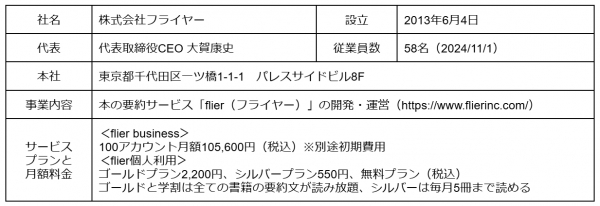 flierは、1冊10分で読める「本の要約サービス」です。ビジネス書の新刊や話題のベストセラー、名著の要約をウェブ、アプリで毎日公開。AIを使った音声版もあります。収録書籍数は3,800冊超、累計会員数は120万人を突破しました(2024年11月現在)。