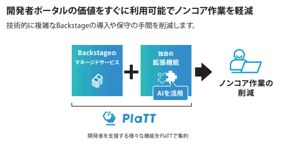 開発者ポータル「PlaTT」シリーズは開発者ポータルBackstageとAIを組み合わせたマネージドサービスです。