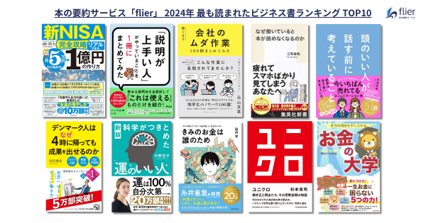 本の要約サービス「flier」が 2024年 最も読まれた「ビジネス書」「著者」ランキングを発表! 「新語・流行語大賞」候補の「新NISA」が注目を集める 著者別は人気エッセイストが1位に