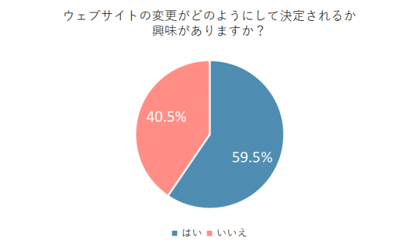 ウェブサイト変更について興味があるかたずねたところ、59.5%の人が「はい」と回答しました。一般の人々がウェブサイトの仕組みや改善過程に興味を持つようになってきていることがうかがえます。