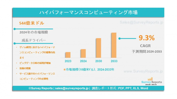 Surveyreportsのアナリストによる定性的な高性能コンピューティング市場分析によると、高性能コンピューティングの市場規模は、ゲノム研究における高性能コンピューティングの需要の高まり、ビッグデータ分析の採用増加、技術開発、サービス面での高性能コンピューティングの必要性などの要因により拡大するだろう。高性能コンピューティング市場における主要企業の一部は、アトスSE、アドバンスト・マイクロ・デバイセズ、ヒューレット・パッカード・エンタープライズ・ディベロップメントLP、デル、シスコシステムズ、富士通、インテル、IBM、マイクロソフト、アマゾンウェブサービス.である。