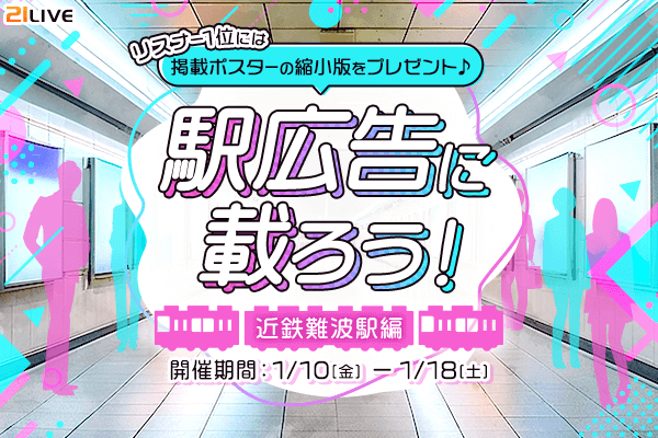 【21LIVE】難波で認知度UPを目指そう!『駅広告に載ろう〜近鉄難波駅編〜』が1月10日(金)より開催☆