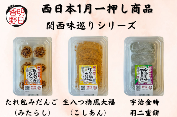 関西各地の名物が楽しめる“関西味巡り”シリーズと、上新粉生地使用の柏餅が登場! 明日香野1月の東西一押し商品をご紹介