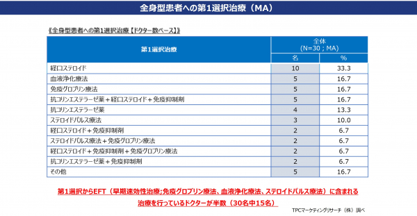 ―全身型・眼筋型の治療実態および評価、分子標的薬の製品別処方状況と処方意向、開発中新薬のニーズを調査―