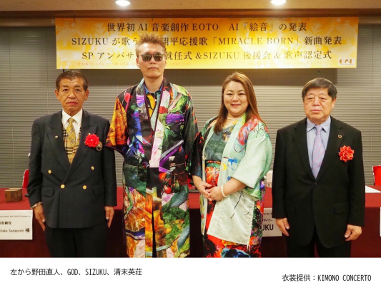 GODがプロデュースする世界初特許の歌声を持つ音浴特許シンガーSIZUKUの後援会の名誉会長に原田義昭元環境大臣、会長に野田直人飯能市議長が就任