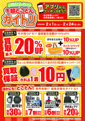 買取王国では2025年2月1日(土)〜2024年2月24日(月)までの期間『冬の超とことんカイトリFes.』を実施致します。