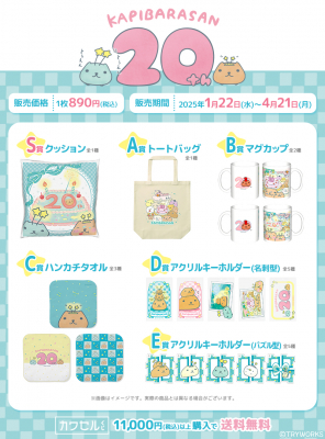 オンラインから気軽に購入できるこのくじで、「カピバラさん」20周年を一緒にお祝いしましょう!