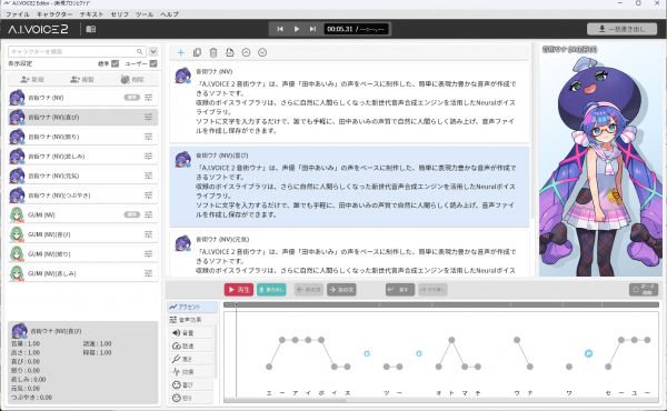 A.I.VOICEの既存ボイスライブラリをそのままA.I.VOICE2 Editor上で使用が可能です。
