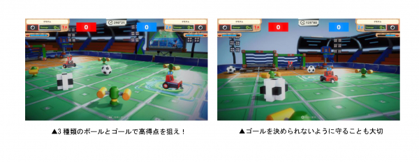 ルール:フィールドに得点が違う3種類のボールを、難易度の違うゴールに運ぶ