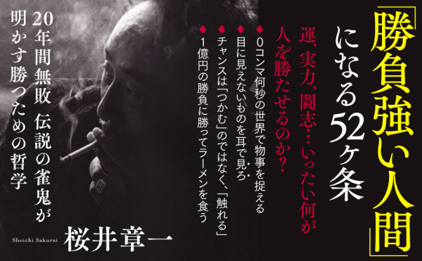 羽生善治氏推薦『「勝負強い人間」になる52ヶ条』著者桜井章一が、電子書籍で配信開始。チャンスを100%モノにするために、必要なこととは。