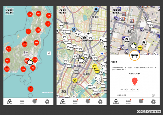 サイバーズ株式会社(本社:東京都渋谷区 / 代表取締役 中林寿文)は、大人の社会科見学として人気が高まっている「インフラツーリズム」をサポートするスマートフォン向けアプリ『インフラすごろく』を世界170カ国以上のアプリストアで無料配信を開始しました。本アプリには、ダム、発電所、空港、トンネル、運河、浄水場などのインフラ施設および関連ミュージアム 6,718件を収録し、すごろくをめぐるようなインフラめぐりをサポートします。