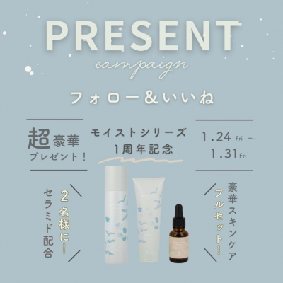 スキンケアブランド ルアンルアン モイストシリーズ発売1周年記念。 豪華3点セットのプレゼントキャンペーン。本日1月24日(金)20時からスタート!