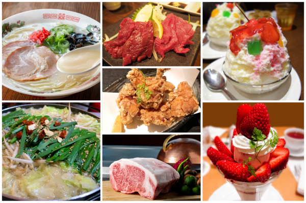 旅の醍醐味といえばやはり当地グルメです。定番の博多とんこつラーメンやもつ鍋、熊本の馬刺しや大分中津唐揚げに宮崎牛とお手軽グルメからリッチなものまで目移りすること間違いなしです!別腹のスイーツは熊本名物のしろくまや苺の王様とも称されるあまおうなど、至高のグルメの数々がお腹も心も満たしてくれること間違いなしです。