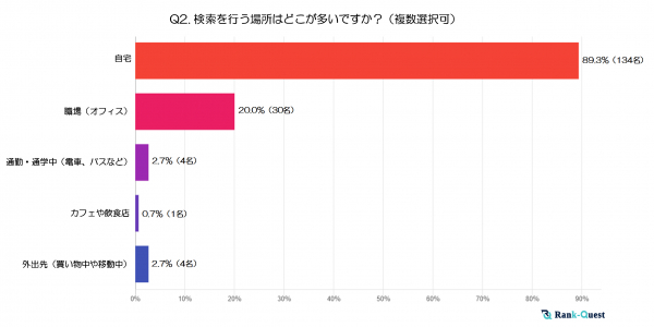 最も多かった回答は「自宅」の89.3%でした。60代の方々はインターネット検索を自宅で落ち着いて行う傾向が非常に強いことがうかがえます。
