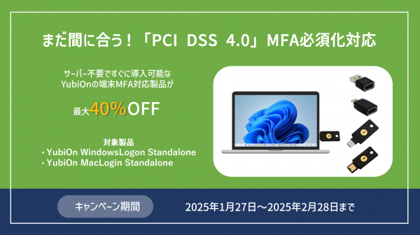 まだ間に合う!「PCI DSS 4.0」MFA必須化対応はYubiOn Standaloneで今すぐ解決! 〜Windows/Mac対応、閉域環境・サーバーレスで利用可能な製品が最大40%OFF!〜