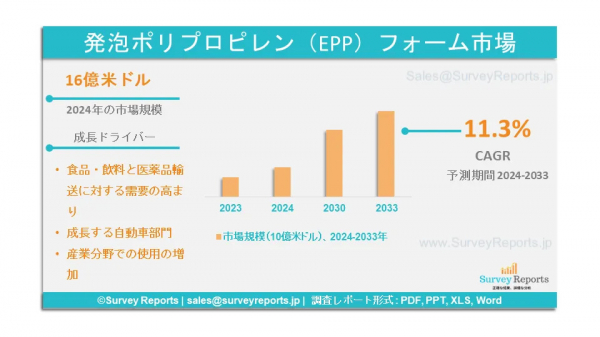 詳細レポートへのアクセスはこちら:https://www.surveyreports.jp/industry-analysis/expanded-polypropylene-epp-foam-market/1037669