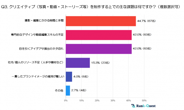 ・調査3:クリエイティブ(写真・動画・ストーリーズ等)を制作する上での主な課題