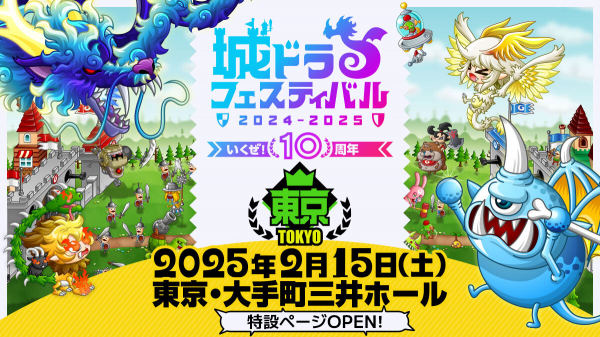 株式会社アソビズム(本社:東京都千代田区、代表取締役:大手智之)は、App Store・Google Playにて好評配信中の『城とドラゴン』において、「城ドラフェス2024-2025」に向けた公式大会となる「腕ONEグランプリ第3回大会 ソロ決勝」の模様を2月2日(日)13:00より『城とドラゴン』公式YouTubeチャンネルで生配信することをお知らせいたします。