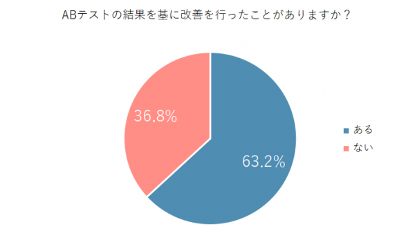 ABテストの結果を基に改善を行ったことがあるかという質問に対し、63.2%が「ある」と回答しました。この結果から、多くの人がABテストの結果を実際の改善につなげていることがわかりました。