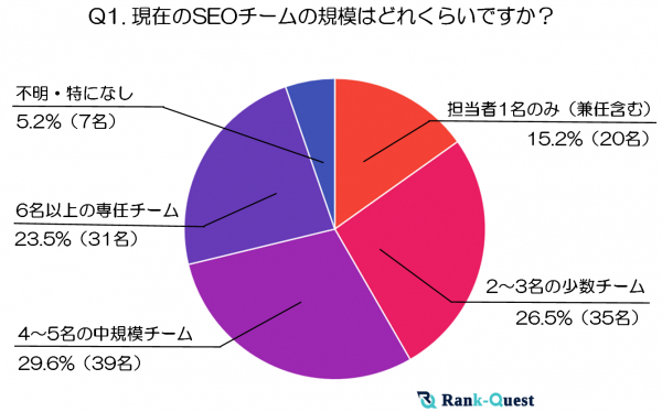 今回、「SEO対策」というキーワードで検索順位No.1(注1)を獲得したランクエスト(https://rank-quest.jp/column/column/how-to-seo/ )は、2025年3月14日〜3月17日にわたり、SEO業務に携わる現役担当者132名を対象に「社内SEOチームの編成&役割分担」に関する独自アンケート調査を実施しました。