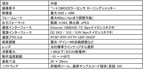 ● 組込用超小型カメラモジュール(29mm x 29mm)