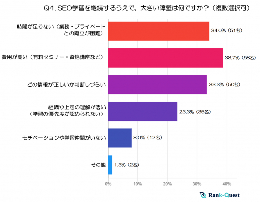 調査結果4:SEO学習を継続するうえで、大きい障壁は何ですか?※複数選択可(注4)