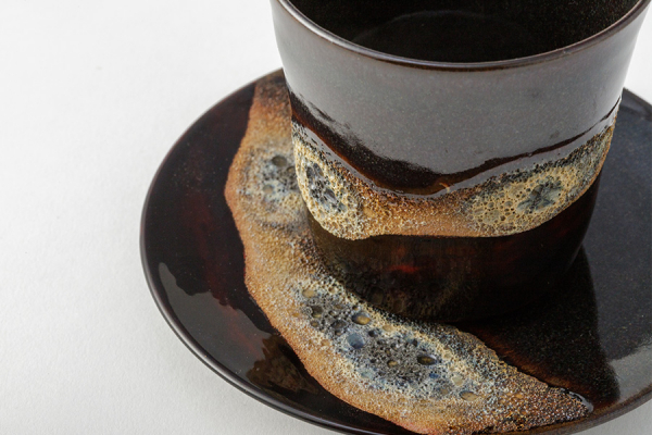 420年の歴史を持つ茶陶「?取焼宗家」による、銀彩や漆を施した新作。代々受け継がれてきた炎の記憶が、うつわの「美」と茶と酒の「香り」を介して心をつなぐ一杯となりますように。