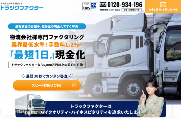 事業資金が最短即日に現金化できる点もトラックファクターの特徴です。急な出費が発生した場合、銀行融資では間に合わないことが起こり得ます。トラックファクターを利用することで、スピーディーな資金調達が可能で、業務に支障をきたしません。