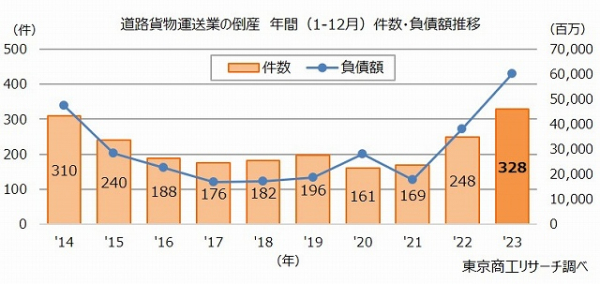 日本の産業を支える物流事業では、中小企業の運送会社が多くを占めるなか、円安や原油高によるコスト高騰、人手不足などの影響で倒産が増加し、黒字倒産も増えている状況です。