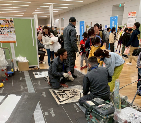 参加支援企業や個人事業主が出展した職業別ブースは28種。左官塗り、ヘアメイク、警察官、自衛隊、鉄筋組立、消防士、カラーコーディネーター、大工、産業廃棄物、IT等の職種で、日常行っている一部の作業を実際に体験できるようブース内を造作してあり、どのブースにも長い列ができていました。