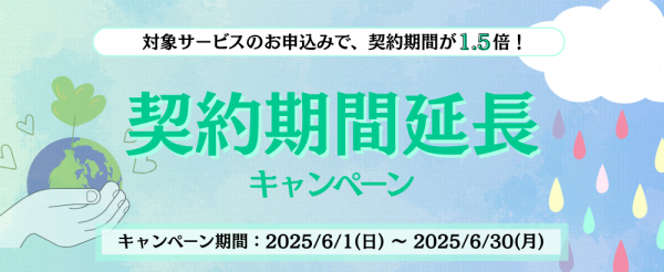 契約期間延長キャンペーンでは、Winserverの対象サービスにお申込みいただくと、ご利用料金はそのままで、契約期間を1.5倍に延長いたします。