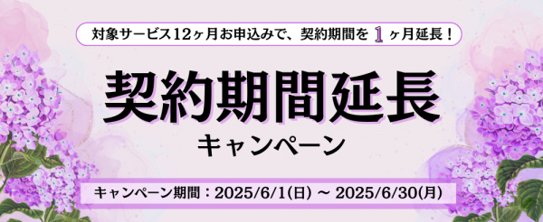 →上記サービスを契約期間12ヶ月間でご契約いただくと、契約期間を1ヶ月間延長!