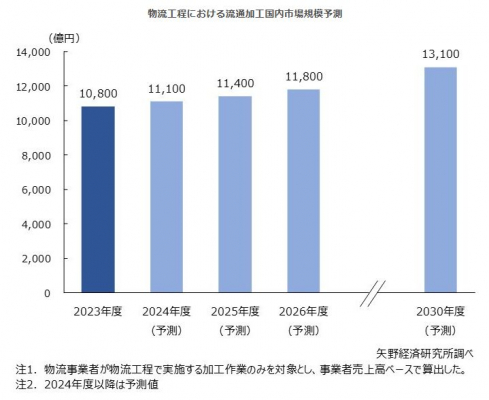 【矢野経済研究所プレスリリース】物流工程における流通加工市場に関する調査を実施(2025年)〜物流機能拡大の一翼を担い、サプライチェーンの最適化を促進し、付加価値の創出に資する要素として注目される〜