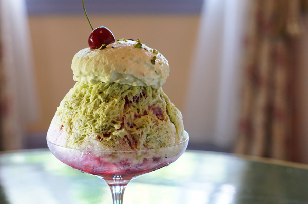 濃厚なピスタチオの練乳ソースと甘酸っぱいグリオットチェリーソースの2種のソースが味わいの特徴です。