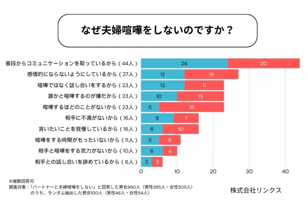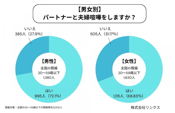 マッチングアプリ「既婚者クラブ」を運営する株式会社リンクス(東京都港区)は、全国の既婚男女3,000人を中心に、「夫婦喧嘩に関する意識調査」を実施。