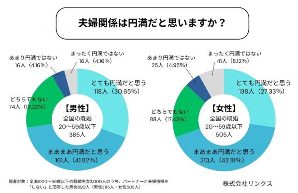 今回の調査では、喧嘩しない夫婦の中にも“円満ではない“と感じる層が一定数存在することが判明。