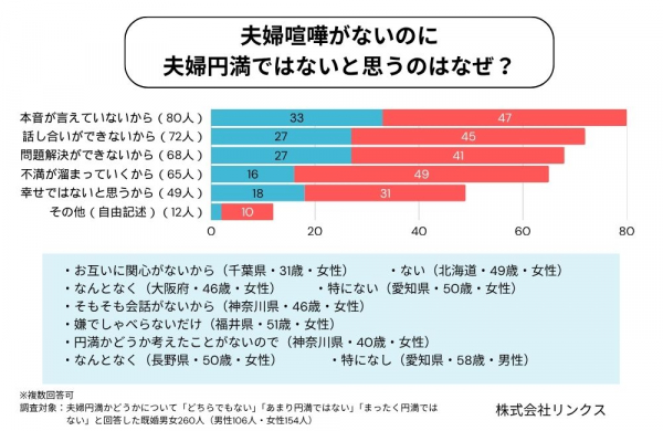 夫婦喧嘩をしないかつ「円満ではない」と回答した260人に、その理由を聞いたところ…