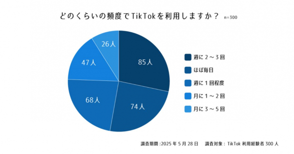 一方で、「週に1回程度」や「月に数回」利用する層も一定数存在します。この結果から、TikTokをEC販促に活用する際、単発的な広告だけでなく、継続的なコンテンツ配信を通じてユーザーとの関係性を深める戦略が有効になるでしょう。