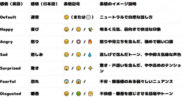 本機能は、従来のナレーション機能に「喜び(Happy)」「怒り(Angry)」「悲しみ(Sad)」「驚き(Surprised)」「恐れ(Fearful)」「嫌悪(Disgust)」「通常(Default)」の7種類の感情スタイルを追加。対象の高品質音声モデルでは、文脈に応じて感情のトーンを自在に切り替えることができ、これまで以上にリアルで自然な朗読が可能になりました。