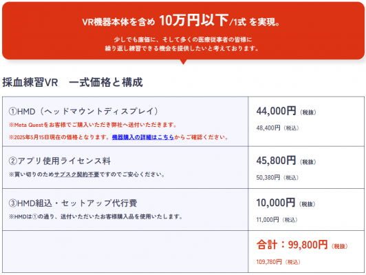 VR機器本体を含め 10万円以下/1式 を実現