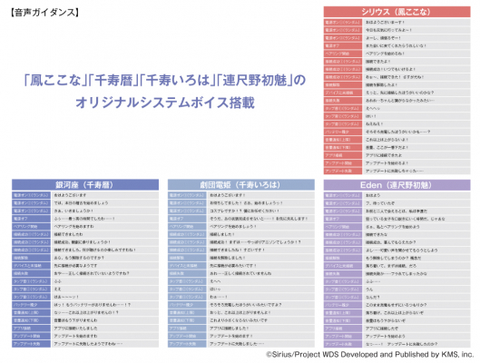 本コラボレーションモデルは「シリウス」「銀河座」「劇団電姫」「Eden」の4モデル。左右異なるデザインのアルミ製ハウジングプレートは各劇団の世界観を表現しました。新規録り下ろし音声ガイダンスは「鳳ここな」「千寿 暦」「千寿 いろは」「連尺野 初魅」各20ワードを搭載。電源オンやオフ、ペアリング時やタップ音等のボイスを楽しめます。ヘッドホンパッケージはそれぞれ描き下ろしイラストデザインとなっております。