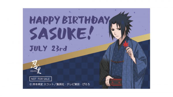 本イベントでは、これまでに忍里でイベントを行ってきたキャラクターたちの誕生日をお祝いする、忍里オリジナルのバースデーカードをご用意いたします。7月は、今回初登場となる、うずまきクシナをはじめ、うちはサスケ、日向ネジ、犬塚キバ、ミツキをお祝いします!