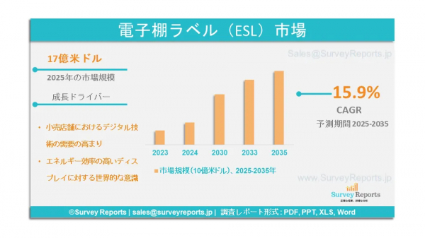 電子棚札(ESL)市場:グローバル調査レポート、需要、規模、開発、メーカーシェア、成長、動向、見通し(2025年〜2035年)
