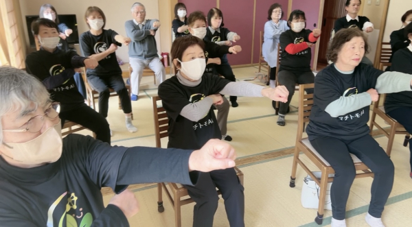 当社が運動の習慣化支援を行っている地域住民の通いの場「健幸さんの家」では、具体的な目標を設定し、認知症予防に取り組んでおります。具体的には「1年後にみんなで演武を披露する!」という目標を設定、「チーム健幸さんの家」のメンバーを集め、空手の形など鍛錬に取り組んでいただきました。そしてこの4月、今までの成果を発表する「椅子空手・団体演武会」を開催、当日は当社代表の小瀧が師範を務め、厳しさと楽しさを織り交ぜた指導の下、真剣に、時には笑いも混じりながらの演武披露の場となりました。目標を設定しそれに向かって取り組むことで、単に運動(デュアルタスクトレーニングによる脳トレ効果)をするだけではなく、仲間との交流や目標意識を持つことができ、認知症予防への効果がより期待できると確信しております。また、その活動の様子を動画などで積極的に発信することで、加茂市においてさらなる認知症予防の啓発にもつなげていきたいと考えております。