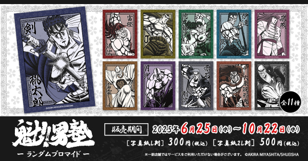 株式会社インクルーズ(東京都渋谷区、代表取締役社長 山? 健司)は、6月25日(水)より、日本全国のコンビニエンスストア店内のマルチコピー機を中心に、気軽にプリントできる「インクルーズプリント by eプリントサービス」にて『魁!!男塾』のイラストを使用したランダムブロマイドが販売開始したことをご報告させていただきます。