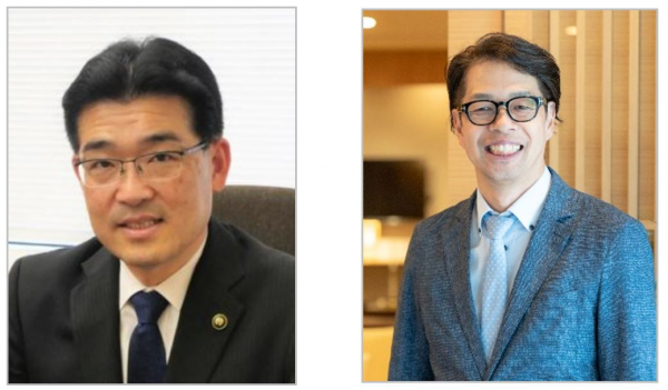 (写真左から)木津川市 市長 谷口 雄一氏、(株)花駒 代表取締役社長 上野 雄一郎