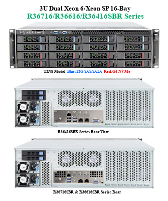 新製品 DP Xeon6/XeonSP,16*3.5/2.5"SAS/SATA/NVMeベイ,G5 PCIeバス 3Uサーバー「R36716SBR」「R36616SBR」「R36416SBR」のご紹介