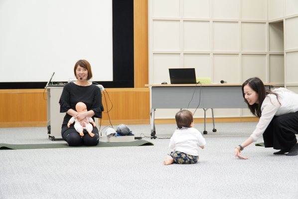 講義では、日常のさまざまなシーンに合わせた抱っこの仕方を実際に体験していただきました。