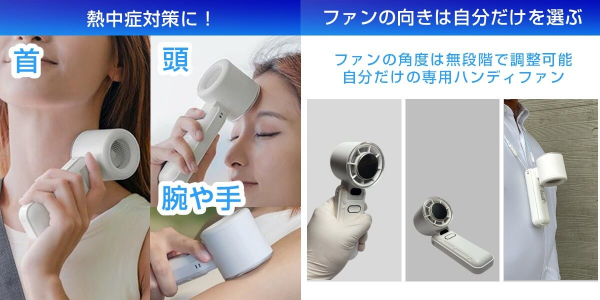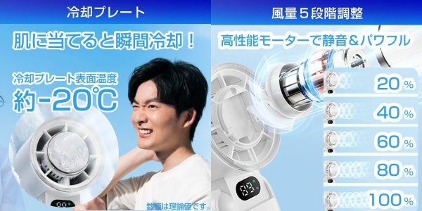 COLDFANDY+(コールドファンディプラス)は、冷却プレートと5段階風量のハンディファンを組み合わせたダブルで涼しいハンディファンです。数秒で冷却プレートがひんやり冷たくなり、外気温より最大約-20℃(※理論値)の温度差で首筋や頬に当てるだけで即座に涼しい。手持ち・首掛け・卓上の3WAY方式で場所を選ばず使えるので、通勤通学、デスクワーク、アウトドア、スポーツ観戦、イベント、さらに猛暑でも外出を避けられないビジネスパーソンや現場作業など夏のあらゆるシーンで活躍します。風量・冷却モード・バッテリー残量がディスプレイに表示され、USB充電式で繰り返し使えるから長時間の外出時でも安心です。